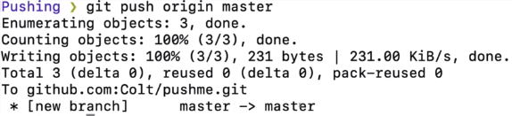 git push origin master 는 로컬의 마스터브랜치를 깃허브의 마스터 브랜치에 push한다는 뜻이다.